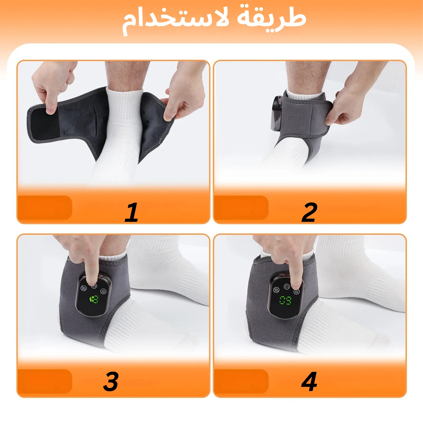 جهاز تدليك ذكي للكاحل يجمع بين العلاج الحراري والاهتزاز لتخفيف الألم والتعب من راحة منزلك. يتميز بـ 4 مستويات حرارة و 3 درجات اهتزاز مع مؤقت ذكي بثلاثة إعدادات، ليمنحك تجربة علاجية مخصصة حسب احتياجك. تصميم مريح وخفيف، لاسلكي وسهل الاستخدام، مثالي لتخفيف آلام الكاحل، التورم، والإجهاد اليومي بعد العمل أو الرياضة.